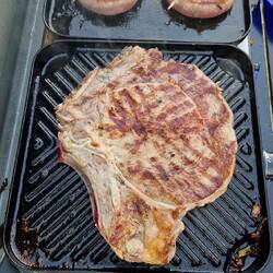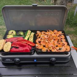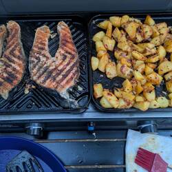 Danach auf der Grillplatte ein Paar Scampi und eine GrillkäseRead more