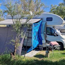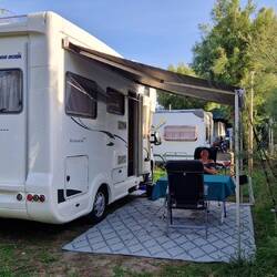 Da unser Campingnachbar abgereist war mussten wir unseren Sonnen Schutz aufrüsten . 😉