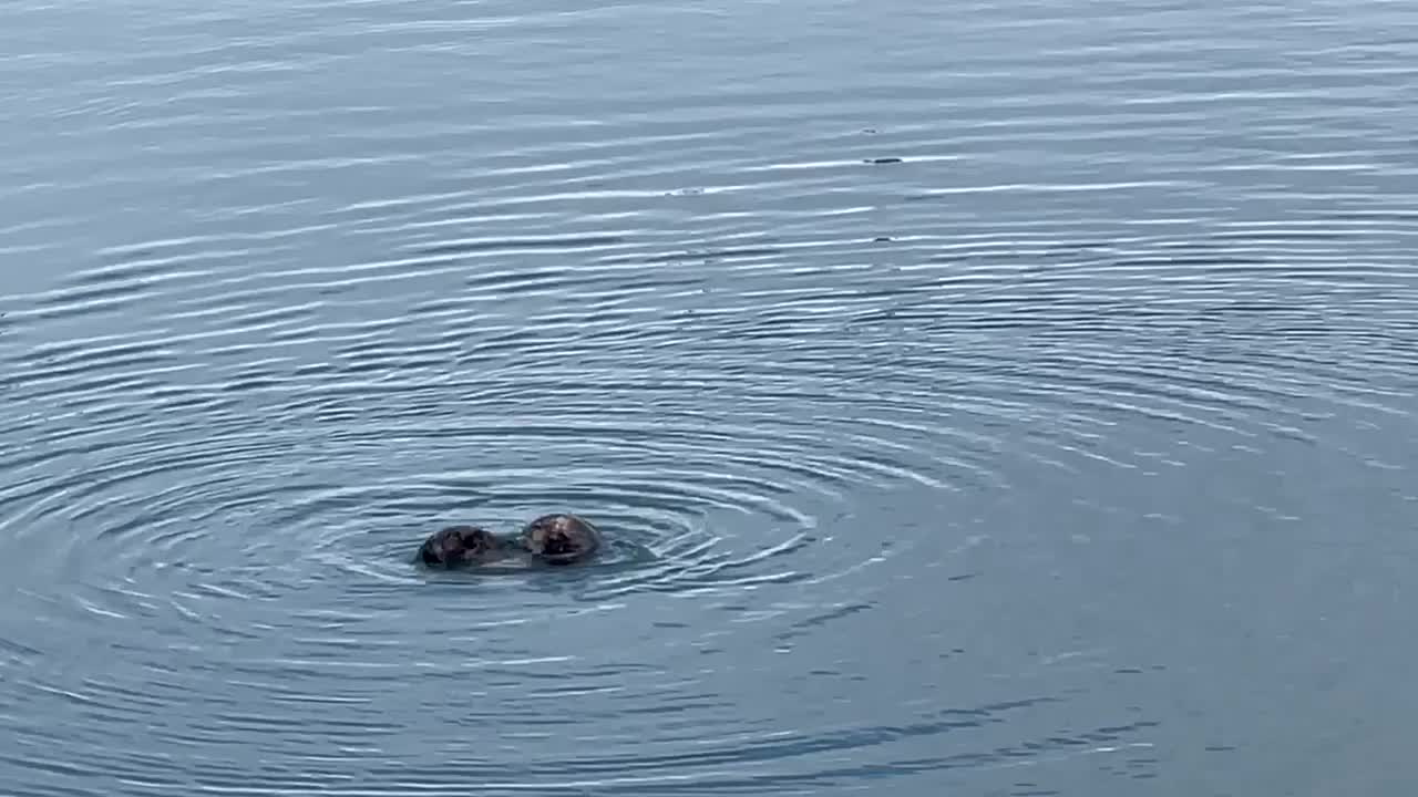 It was neither Mui nor I who took a bath in the boat harbor. Rather it was a sea otter that was enjoying the bathing experience in the cold waters of Kachemak Bay.