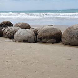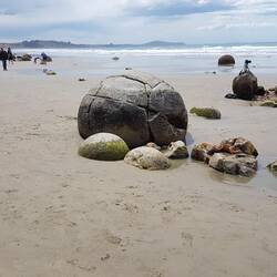 Hier besichtigen wir noch die Moeraki Boulder, das sind runde Steine an der Küste, diese sind etwa 60 MillioLæs mere