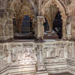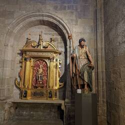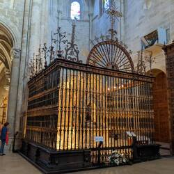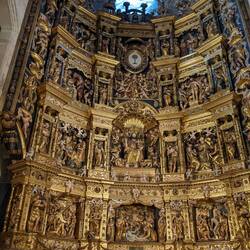 A teraz czas na trochę ciekawostek. Sw. Dominik prowadził pustelnicze życie nieopodal i bardzo był zaangażowany w życie i potrzeby pielgrzymow. Budowla katedry zaczęła się w XII wieku i po zawaleniu części budowli została rozbudowana w XV i XVI wieku. Katedra ma wiele skarbów, ale chyba największym jest krypta i relikwie Sw. Dominika. Mnóstwo trudnych do opisania ołtarzy,obrazów i rzeźb, wiele w bardzo rozbudowanym stylu barokowym.