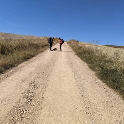 Kolejny bardzo ciekawy dzień, choć dzisiaj pomału kończyły się winogrona i zaczęły ogromne i otwarte przestrzenie. Poruszaliśmy się głównie pustymi polnymi drogami przepełnionymi słońcem i refleksjami. Tak naprawdę nic się nie działo i wsłuchiwanie się w równomierny krok wydobywający z suchego piasku i kamieni odgłosy, które wypełniały wszystko, nadając rytm i jednocześnie organizując przyszłość. Oddani głównie własnym myślom, które co jakiś czas szukały towarzystwa dzieląc się jednym lub dwoma zdaniami. Tak naprawdę minęliśmy tylko dwie osady Azofra była pierwsza i tam napiliśmy się kawy i soku ze świeżych pomarańczy, który stał się naszym ulubionym przedpołudniowym napojem, a potem po dość ostrym podejściu wymarłe miasto Cirinuella. W końcu pokazała się wieża katedry w Santo Domingo, która pojawiała się i znikała w zależności od wysokości.