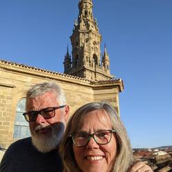 Today was a tiering day... Long and hot and no shade. And the last 4 km felt like another 10... For the last 4 km we have seen the tower of the Cathedral in the verizon, but it wouldn't get closer to us for a long time...like it wasn't real... Actually it's very unique cathedral tower. It stands freely a little away from the maim building, almost like it doesn't belong together... While touring the Cathedral we were able to go on its roof and had a great view of that tower, also we climbed the high stairs of tower itself to see numerous bells and beautiful views. Pilgrims had s discount for touring the tower😜. I think we were the only pilgrims who claimed it lately... It was a killer climb. But very worth it additional effort 😁.