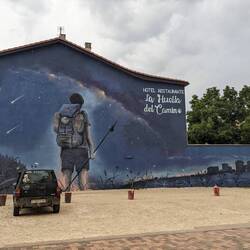W kolejnym miasteczku Viloria de la Rioja urodził się Święty Dominik. W miejscowym kościele jest zachowana chrzcielnica w której był ochrzczony a przy głównym ołtarzu jego figurka z relikwiami. Reszta drogi upłynęła nam na marszrucie w żużlowym kurzu, huku przejeżdżających ciężarówek odliczaniu ostatnich kilometrów... Na szczęście miasteczko Belorado i nasze miejsce zatrzymania okazało się bardzo klimatyczne i urocze. Mnóstwo kolorowych murali, piękny kościółek i gościnni gospodarze naszego hoteliku. Pięknie zakończony dość wyczerpujący dzień.Read more