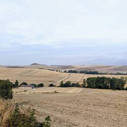 Dzisiejsza droga można powiedzieć prowadziła cały czas bardzo delikatnie pod górę w sposób falujący. Większość czasu przebiegała wzdłuż dość ruchliwej drogi odbijając na szczęście co jakiś czas do małych wioseczek. Nie będę wspominał wszystkich ale wspomnę tylko parę punktów. Mianowicie pożegnaliśmy się z La Roja i winnicami na dobre i weszliśmy do największego rejonu Hiszpanii Castilla y Leon, który będzie się ciągnął przez ponad 400 km. Zaczęły nam towarzyszyć przeogromne otwarte przestrzenie, z rzędami zasuszonych słoneczników.. przypominających złomowisko zardzewiałych pryszniców zwróconych w jedną stronę...