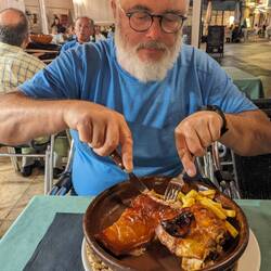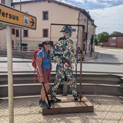 Na szczęście noc w 8 osobowym pokoju upłynęła bardzo spokojnie. Nie było spadających pluskiew i nikt z lokatorów nie chrapał i nikt nie kursował do toalety.... O godzinie 6 zaczęli się wszyscy szykować do kolejnego dnia wędrówki, więc i ja spakowałam swój plecak i ruszyłam w drogę. Dzisiejszy droga do Burgos zajęła mi ok 7 godzin, który upłynęły na wspinaczce po kamienistej drodze do symbolicznego krzyża w miejscu którego rozpościerała się piękna panorama Burgos, jednak jeszcze wciąż odległa. Potem droga wiodła szosą asfaltową, następnie wzdłuż miejscowego lotniska, a ostatni odcinek przez uroczy miejski park wzdłuż rzeki , aż do centrum miasta, gdzie znajduje się nasz hotel na najbliższe dwie noce. A co będzie dalej zależeć będzie od gojenia się Tomkowego palucha. Dlatego dzisiaj bardzo ostrożnie, nie wypuszczając się daleko, wybraliśmy się na obiad w pobliżu katedry, od której trudno jest oderwać wzrok, szczególnie wieczorem, kiedy jest pięknie podświetlona. Za Tomkiem od dawna chodziła pokusa spróbowania lokalnego przysmaku, małego grillowanego prosiaczka. Dzisiaj marzenia się spełniły. Po prosiaczkowej uczcie jesteśmy gotowi na nocny wypoczynek. Myśl, że jutro można pospać "do oporu" bardzo nas cieszy.Read more