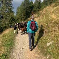 Day 3 was overcast but we ventured out anyway. Our destination was Val Fex Crasta, but we only made it to Val Fex Platta. As we were heading up a steep climb into the Alpine meadows, it started to rain so we headed into the nearest Hotel - Sonne. As luck would have it, we all ordered the soup of the day - incredible, the best tomato soup ever, served in a white bowl with fresh basil and cheese. Aesthetic and delicious. Wish I’d taken a pic.