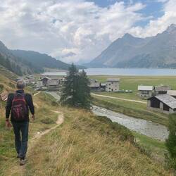 Another 20,000 + step day. This time we were off to Maloja. We started off towards Val Fe again, then turned left at Sonne Hotel - tempted to stop for tomato soup again- then headed straight up heading for Isola peninsula. What a climb. The highlight of the day was the goats. They were everywhere, stampeding past us and blocking our road - totally oblivious to the fact we were there. We paused at Isola and watched the men putting up trees to avoid avalanches, then trekked on to Maloja. From here we had another amazing view of the lake and a some kite surfers. On route back I we stopped at Isola for beer, then headed back home.