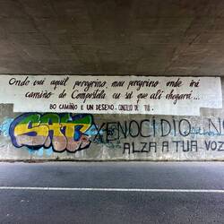 Zehnte Etappe: heut gings 18km von Tui nach O Porriño. Also das ist ja mal ne nicht so schöne Stadt. Dafür wurde ich von einem spanischen Opi herzlich begrüßt, indem er 10 Minuten mit einemLæs mere