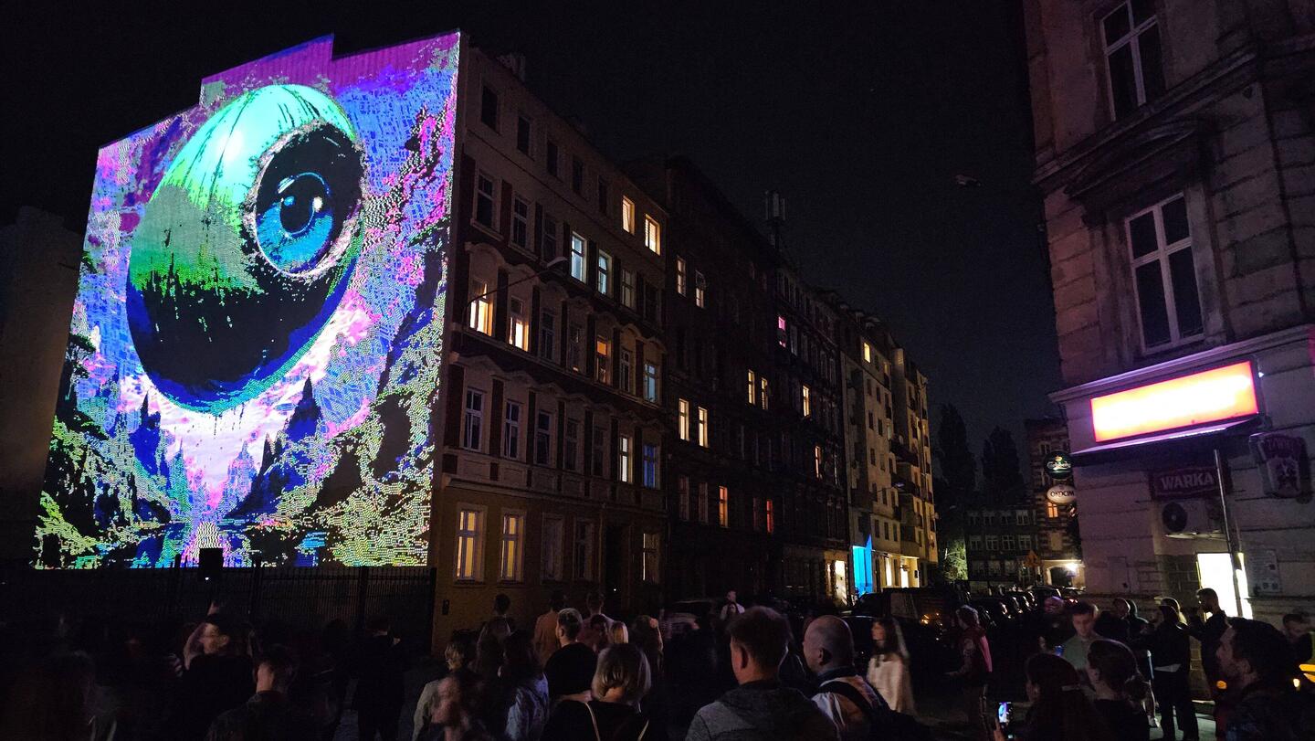 Open Air Kino Mural: Festival für Neue Medienkunst (auf 7 Mietshausfassaden im Stadtteil Nadodrza)