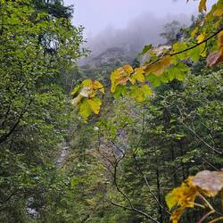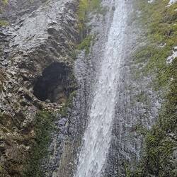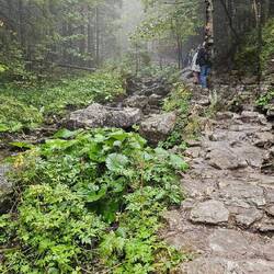 Siklawica-Wasserfall über einen Wanderpfad erreichbar, Wetter leider regnerisch-grau