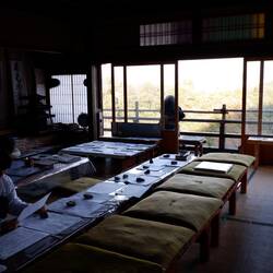 Ich lief dann stattdessen dem Fluss entlang durch den Wald. Plötzlich war Schluss. Es führte ein schmaler Weg nach oben. Ich ging hoch, und kam an einem kleinen Tempel an mit einer grandiosen Aussicht. Fluss abwärts bis in die Stadt von Kyoto sah man. Ich lief zurück zur Brücke, überquerte sie und gelang in eine Strasse mit vielen Shops und Restaurants und nach einer weile tauchte ein kleiner Bahnhof auf. Es hatte auf der ganzen Strasse viele kleine Souvenirshops und Essenstände die verschiedene Köstlichkeiten der Region anboten. Ebenfalls dort befand sich auch ein Bambuswald welchen ich unbedingt noch besichtigen möchte. Ich folgte der Strasse aufwärts den Schildern und kam auf die geteerte Waldstrasse welche ich und viele andere folgten. Da es schon spät war und ich müde und hungrig machte ich eine kleine Runde von 15‘ durch den Bambuswald. Ich lief zurück auf die Hauptstrasse runter zum Fluss. Leider machten viele Restaurants schon zu, also wollte ich den Bus zurück in Zentrum nehmen. An der Bushalte stelle studierte ich den Fahrplan. Auf diesem war alles japanisch angeschrieben und gewisse sachen auch in Englisch. Da es Samstag war fuhr der Bus anders, jedoch konnte ich das nicht wissen. da es ja Japanisch angeschrieben ist. Also fragte Passanten doch keiner wollte wirklich helfen und die, die halfen verstanden und sprachen kein Englisch. Irgendwann kam eine andere und sie diskutierten. Ich fand dabei heraus, dass ich runter zum Fluss gehen muss. Ich lief weiter. Fast am ende der Strasse hatte noch Essenstand geöffnet wo es eine art Spiesse gab. Ich bestellte 2 und ging weiter. Auf der Brücke fuhr dann der Bus vorbei welchen ich nehmen müsste. Scheisse! Ich wartete nun schon über 1 h auf den Bus...