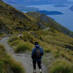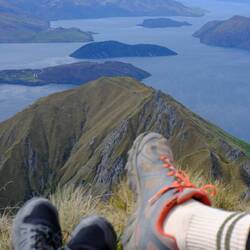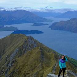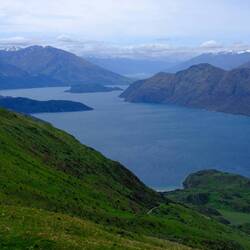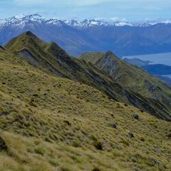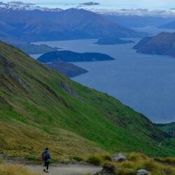 Comme prévu, le soleil est au rendez-vous, et les points de vues plus splendides les uns que les autres. La montée jusqu'au 'Roys Peak' (1'578m) est raide mais relativement peu technique, offrant une vue dégagée tout du long sur le lac 'Wanaka'. Ma-gni-fi-que!