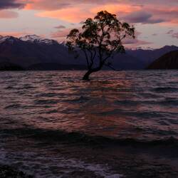 Pour clore cette magnifique journée, nous rejoignons le lac 'Wanaka', pour admirer le coucher de soleil. A 20h45, le ciel se transforme et se colore de tons rose; les nuages paraissent peint, et le tout est rendu encore plus spécial par la présence d'un unique arbre fièrement assis en plein milieu de l'eau ('The Willow Tree').もっと詳しく