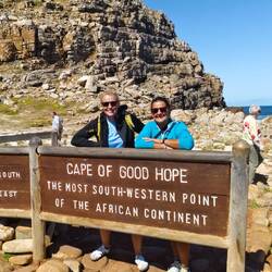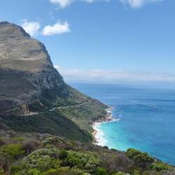 Weiter ging es von dort zum Kap der guten Hoffnung. Die Fahrt an sich war schon ein echtes Erlebnis. Einsame Traumstrände, spektakuläre Berge, und Steilklippen säumten unseren Weg, als wir zum Ende des Kontinents gurkten.