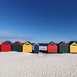 Die Rückfahrt war geprägt von Pavianen, die sich vorgenommen haben, die Straßen etwas abenteuerlicher zu gestalten und einen Besuch in Muizenberg, einem der Surferstrände in der Nähe von Kapstadt, bekannt für seine bunten Häuschen (es handelt sich um kleine mietbare Cottages). 🏄🏼♀️
