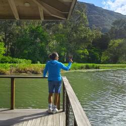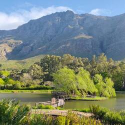 Anschließend ging es nach Stark-Condé zu einer Weinprobe im sogenannten Postcard-Café, das seinem Namen alle Ehre machte. Die Probe fand in einem Cottage statt, dass sich auf einer kleinen Insel in mitten eines Sees befand umgeben von einer traumhaftem Berglandschaft. Es war schön beinahe kitschig, vor lauter schön 😍
