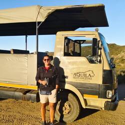 Endlich konnten wir Simone's Geburtstagsgeschenk einlösen - die Aquila Lodge. Die Lodge liegt rund 2 Stunden von Kapstadt entfernt mitten im nirgendwo und betreibt einen privaten Nationalpark in dem Löwen, Elefanten, Hippos, Zebras, Antilopen etc Zuhause sind.