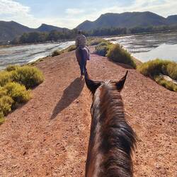 Am letzten Tag ging es dann zu Pferd in den Park. Ich bin zwar keine besonders gute Reiterin, aber "passabel* trifft es als Beschreibung ganz gut. Ich kann ganz gut mit Pferden und komme gut zu Recht. Simone's Erfahrungsschatz umfasste bis dato das Sitzen auf einem Esel, einen abenteuerlichen Ritt im Ägypten vor 4 Jahren, wo der einzige Grund für einen Nicht-Sturz vom Wüstengaul lediglich etwas Glück zu verdanken war und dem intensiven Kontakt, den Simone zum Esel unserer Nachbarn in Portugal pflegt. Ihre Beziehung ist jedoch rein kommunikativer Natur, was bedeutet, dass der Esel auf der Wiese steht und frisst und ab und an den Kopf hebt in der Hoffnung das es was zu fressen gibt, während Simone ihn in ihrem Osttiroler Dialekt vollsülzt. Der portugiesische Esel denkt sich wahrscheinlich auch seinen Teil 🤣 Wie dem auch sei, als der Pferdemensch fragte wie unsere Erfahrung mit Pferden sei, ertönte ein selbstbewusstes, "ja, mit Erfahrung" von meiner Frau. Der Esel in Portugal wird wahrscheinlich herzlich darüber lachen, wenn Simone ihm die Geschichte erzählt. Der Mann im Pferdestall schaute sich Simone's Interaktion mit den Pferden 2min an und setzte sie anschließend auf ein Pferd Namens "Prince". Wer erkennt hier noch eine gewisse Ironie außer mir? 🤣