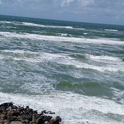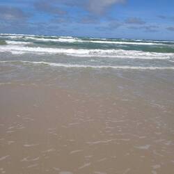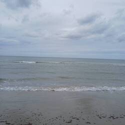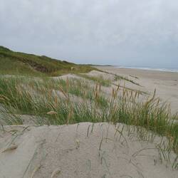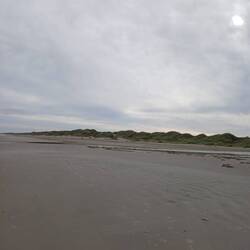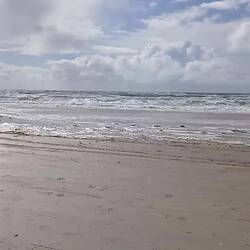 Heute morgen ist es windstill, kein stürmischer Wind aber stark bewölkt. Ideal für einen Strandspaziergang.