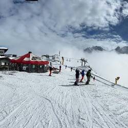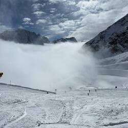 Tag 3 haben beide ohne Blessuren überstanden. Statt Talabfahrt mit Wasserski lieber die Gondel runter genommen. Dem Wetter hat es heute an gar nichts gefehlt. Nebel, Schneefall, Sonne und manchmalLæs mere