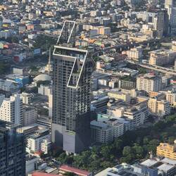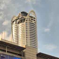 Nach etwa 3 Std Busfahrt und noch 2 Std im Stau sind wir im Hotel un Bangkok angekommen. Unser Guide schlug vor im Baiyoke Sky Hotel zu Essen. Sylvie und ich haben den Turm und die Umgebung auf eigeneLes mer
