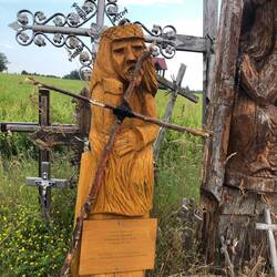 Baum fällen - und ein Kreuz erstellen . Es besticht durch seine Schlichtheit : Ich bin gespannt , wie lang es dort stehen bleibt 🤔