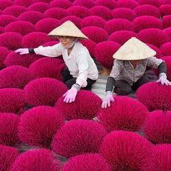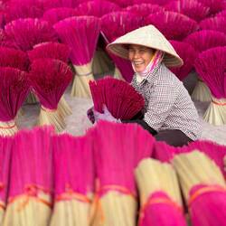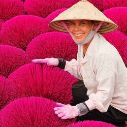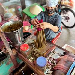 Wieder geht‘s früh los, Abfahrt um 06:00 Uhr - heute fahren wir mit Minh zum incense village, dem Räucherstäbchen-dorf…