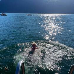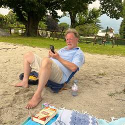 Heute war ein richtig warmer Sommertag. Ideal, um in unsere Urlaubslektüre einzutauchen, am Lido zu entspannen und von Zeit zu Zeit mit den Enten im Lago eine Erfrischung zu nehmen.