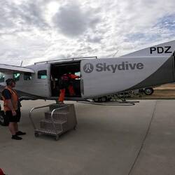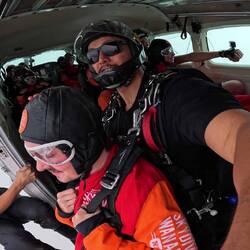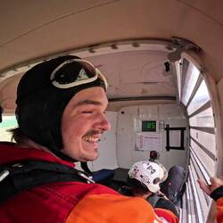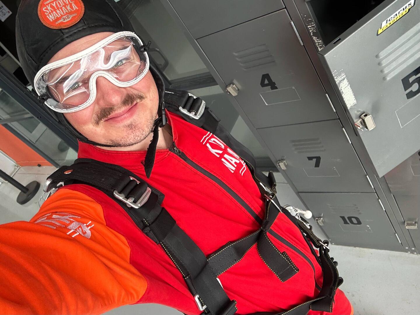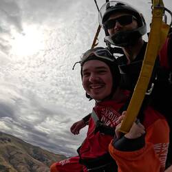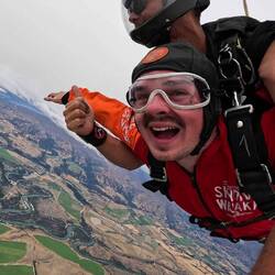 Super fun experience! Tandem jump from 9000ft with Skydive Wanaka! Fun little small plane, everyone sits with their tandem jumper and jumps out the window one after the other. We jumped first, and then there was quite a break before the others jumped due to cloud cover and visibility.