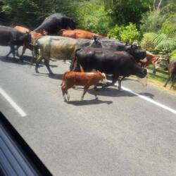 Des vaches qui bloquent le chemin et des ruber ducky dans la rivière 😅