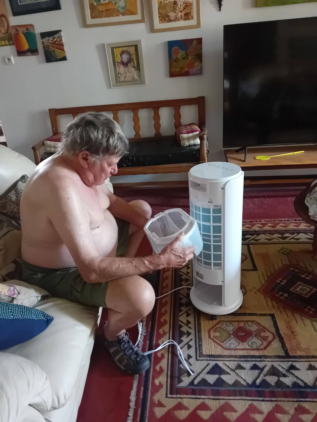 On the way home we stopped at the hardware shop to buy a portable air con unit, and loaded it into our already full car. Now we can cool off.