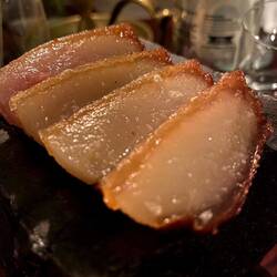 „Der Liebe wegen kam der aus dem österreichischen Mödling stammende Sebastian Frank nach Berlin, der Heimat seiner Lebensgefährtin Jeannine Kessler. Hier wurde er im "Horváth" zunächst Küchenchef, bevor beide das Restaurant übernahmen. Sebastian Frank hat seine ganz eigene Handschrift, fast schon unspektakulär und vielleicht gerade deshalb so bemerkenswert: Klar und reduziert setzt er hochwertige Zutaten in Szene, wobei er jedes Produkt gleichwertig behandelt und auch gerne Gemüse in den Mittelpunkt stellt. Er konzentriert sich auf wenige Bestandteile, die er zu Gerichten voller Aromen, Harmonie und Kraft verbindet. Hohen Erinnerungswert hat da z. B. "Pilzleber & Butterstriezel". Angenehm ungezwungen die Atmosphäre, freundlich und kompetent der Service samt interessanter Weinempfehlungen.“Les mer