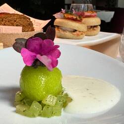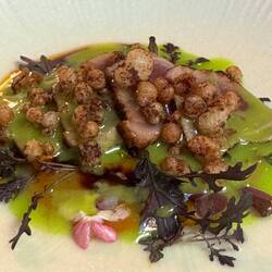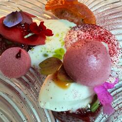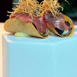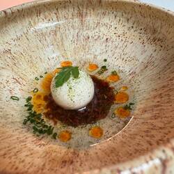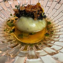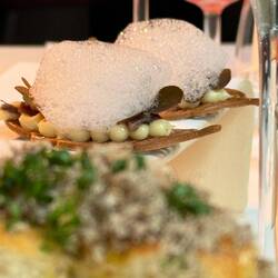 Im Nuta Restaurant setzt Andrea Camastra seine kulinarische Vision fort. Er legt großen Wert auf die Verwendung von saisonalen und regionalen Zutaten und arbeitet eng mit lokalen Produzenten zusammen. Seine Gerichte sind bekannt für ihre außergewöhnliche Präsentation und die harmonische Kombination von Aromen und Texturen.