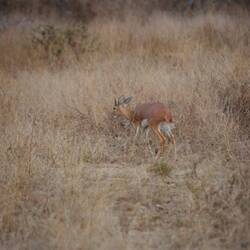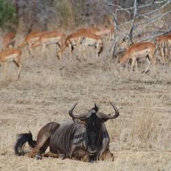 Während unserer Fahrt durch das Herz des Parks wurden wir ständig mit der Vielfalt der Tierwelt überrascht. Wir sahen elegante Impalas, die geschickt durch das Unterholz sprangen, und majestätische Giraffen, die an den hohen Baumkronen knabberten. Unsere Aufmerksamkeit wurde auch von den beeindruckenden Hornraben auf sich gezogen, die neugierig in die Kamera blickten. Hoch oben kreisten Kampfadler majestätisch am Himmel, während Wasserböcke und Bushböcke entspannt in der Nähe von Wasserstellen grasten.