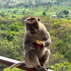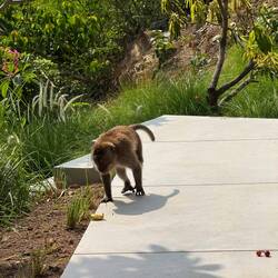 Erst vorsichtig, dann doch eher unverschämt kam er zum Fenster rein und hat sich bei mir mit auf den Tisch gesetzt. Die Äpfel und Weintrauben haben ihm es angetan.