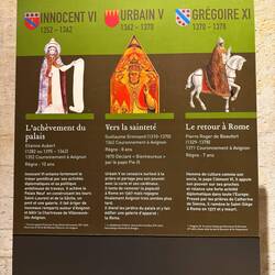 Historisch gesehen war Avignon zwischen 1309 und 1377 das Zentrum der katholischen Kirche. Der Papst hatte seinen Sitz nicht in Rom, sondern eben hier – mitten in Südfrankreich. Insgesamt neun Päpste residierten hier, zuletzt Gregor XI., der 1377 nach Rom zurückkehrte. Eine Informationstafel im Palast zeigte unter anderem die Päpste Innozenz VI., Urban V. und Gregor XI. – alle spielten eine zentrale Rolle beim Ausbau des Palasts und der Diplomatie mit Rom.