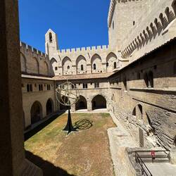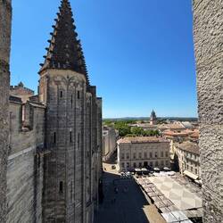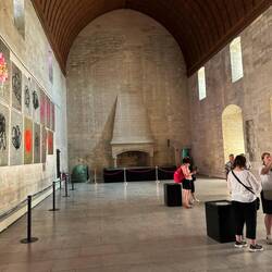 Nach einem leckeren Frühstück haben wir unsere Sachen ins Auto gebracht. Eigentlich wollten wir schon los – aber der Papstpalast hat uns doch gelockt. Tickets schnell online gekauft, alles unkompliziert, wären da nicht schon um 10:30 die 35 Grad gewesen. Einfach zu heiß! Aber zum Glück ist es im Inneren des Palastes angenehm kühl – dicke Mauern sei Dank.