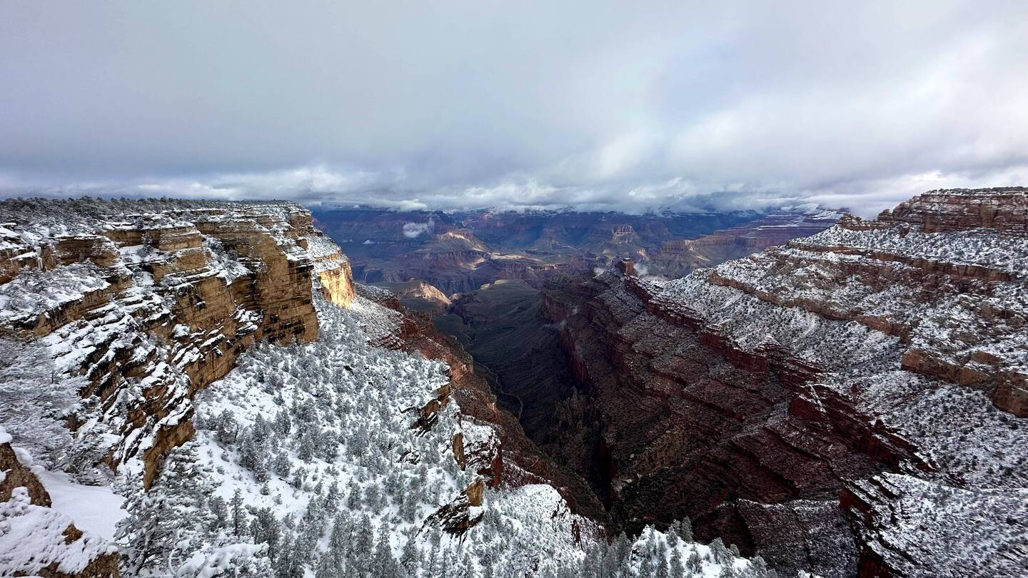 Nach dem Frühstück machten wir uns auf dem Weg zu dem Canyon. Der Schneefall hatte sich gelegt und es zeigte sich vereinzelt die Sonne.