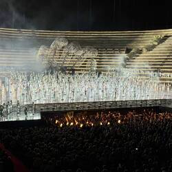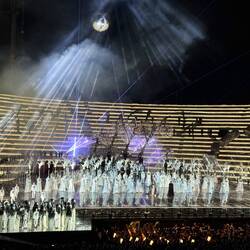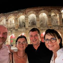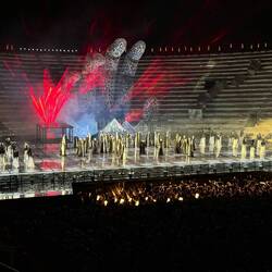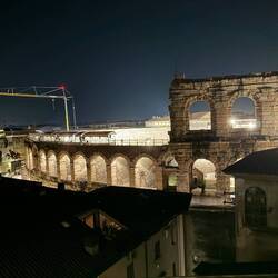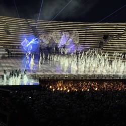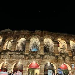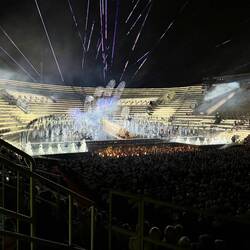 Nach einem leckeren Abendessen ging es gleich ins Kolosseum in Verona. Schon auch genial, dass man in einem 2000 Jahre alten Gebäude immer noch der Kunst frönen kann.