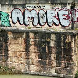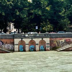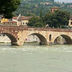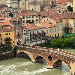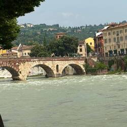Verona ist ja quasi umrundet von der Etsch. Der Fluss hatte richtig Wasser und war reisend schnell unterwegs.