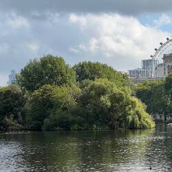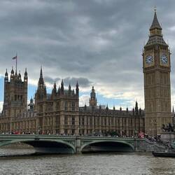 Wir sind mit dem Boot wieder zurück zur Tower Bridge und noch weiter bis Westminster gefahren. Man sieht richtig gut hier die berühmten Gebäude entlang der Themse: The Shard, London Eye …