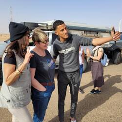 Nous apercevons des raffineries au milieu des petites dunes de sable. Nous nous sentons vraiment loin.