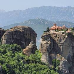 Les Météores : ensemble de pitons rocheux pouvant atteindre 600m de haut. Vraiment impressionnant. Au sommet de certains pitons, des monastères perchés.