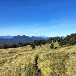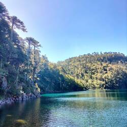 Ils nous déposent gentiment au début de la randonnée, proche de la frontière argentine à presque une heure de voiture de Pucon. Eux aussi vont randonner dans le coin mais seulement pour la journée. Le premier jour, les paysages alternent entre forêts et prairies luxuriantes et plaines volcaniques désolées. On dirait le Mordor. Après 3 semaines de sédentarité à aider dans le Parque Salto del Claro, la première journée est un peu difficile. On arrivera à notre objectif : la laguna azul, juste avant que le soleil ne se couche. À 20h30 on s'endort éreintés par la journée et les jambes lourdes comme du plomb