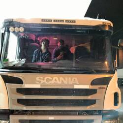 Il n'est pas très tard quand elle nous dépose alors on espère pouvoir pousser encore une cinquantaine de kilomètres et passer la nuit à Commodo Rivadavia. Au bout d'une heure d'attente, quelque chose dont on rêvait depuis qu'on a commencé à voyager en stop se produit : un camion s'arrête à notre hauteur et nous propose de monter. C'est ainsi que nous avons fait la rencontre de Facundo qui faisait le chemin entre Ushuaia et Buenos-Aires et avec qui nous avons roulé toute la nuit en direction du Nord. Au total on a passé 18 heures avec lui et c'était une expérience inoubliable ! Voyager dans un camion c'est vraiment partager le quotidien de son conducteur, ça donne presque l'impression d'entrer chez lui. En plus Facundo était super sympa, il nous a raconté pleins d'anecdotes sur son métier et il connaissait la région par cœur. 13 heures de route, 5 heures de repos sur une aire d'autoroute, environ 15 litres de maté et surtout 850 km plus tard, nous voilà arrivés aux abords de Las Grutas. Facundo nous dépose un peu avant la ville au niveau d'une intersection avec une route qui mène directement à San Carlos de Bariloche. Il est alors 13h et après d'ultimes remerciements on se retrouve de nouveau tous les trois le pouce levé au bord du chemin. C'est fou ce que le climat peut changer entre le nord et le sud et la première chose qui nous frappe quand on descend du camion est la chaleur : il fait 30 dégrés et la zone est désertique sans le moindre coin d'ombre pour échapper au soleil, c'est pas franchement attrayant comme endroit pour faire du stop mais on n'a pas vraiment le choix et puis on touche presque au but ! Il y a peu de passage, la chaleur se fait de plus en plus écrasante au fur et à mesure que le temps passe et le niveau de nos gourdes diminue à vue d'oeil. Au bout de 2h30 nous vient une idée dont nous ne sommes pas peu fiers : agiter une gourde vide en même temps que nos pouces lorsqu'une voiture passe pour l'encourager à s'arrêter ne serait-ce que pour vérifier que nous ne sommes pas en train de mourir de soif. Une fois la voiture arrêtée il nous suffit d'user de notre charme naturel pour qu'elle accepte de nous emmener. Ça a marché du tonnerre : en une demie heure un couple qui allait dans l'autre sens nous a offert une bouteille de soda et peu de temps après une voiture s'arrête enfin à notre hauteur. Mieux encore, le conducteur va jusqu'à San Carlos de Bariloche, on a du mal à y croire mais on va réussir à atteindre notre destination ce soir ! C'est parti pour les dernières 6 heures de routes dans la campagne désertique, enfin il me semble que c'etait ça le paysage, je n'en suis pas sûr car j'ai dormi la très grande majorité du temps (650 km). On atteint Bariloche aux alentours de 23h, on se hâte de trouver un coin d'herbe pour poser la tente en bordure de la ville et on se couche ravis d'être arrivés et aussi complétement lessivés par ce petit périple. Au total on aura parcouru près de 2400 kilomètres en moins de 72 heures.