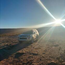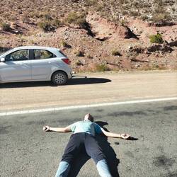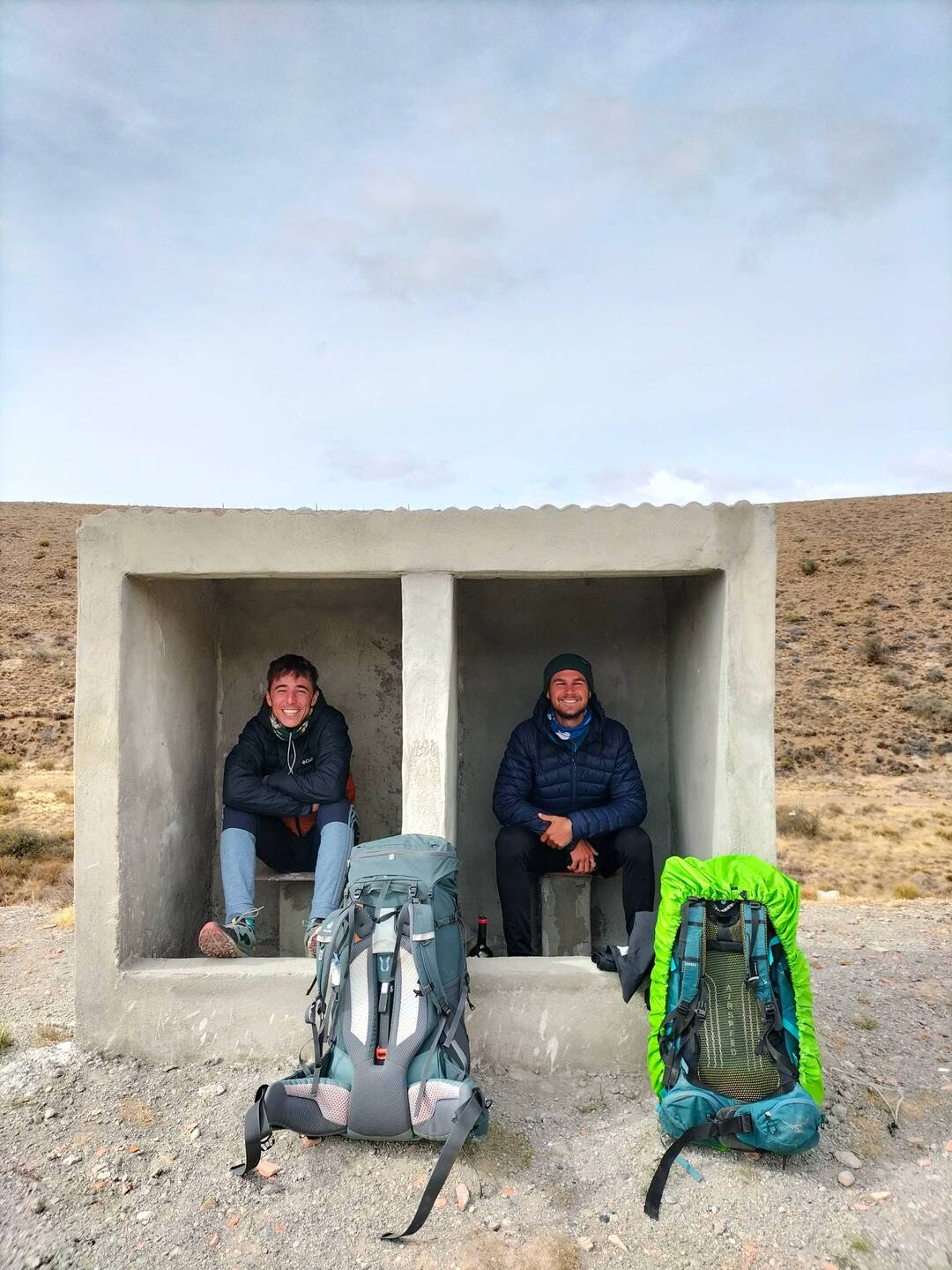 On continue de tendre le pouce et un couple de Chiliens venus faire leurs courses en Argentine pour profiter des bas prix dans le pays nous emmènent jusqu'à la ville suivante : Veintiocho de Noviembre, oui oui c'est bien le nom d'une ville (20 km). Pour l'instant on avance plutôt bien et malgré le mauvais temps qui nous mine un peu le moral on reste focus sur notre objectif : rejoindre la côte Est. Pendant qu'on marche sur le bord de la route, une famille qui roule dans l'autre sens s'arrête et nous explique que la route vers laquelle on se dirige a beau être la route principale vers l'est, elle n'est presque pas fréquentée à cause de sa mauvaise qualité. Ils nous proposent de nous déposer à un endroit plus adapté pour faire du stop, on accepte volontiers bien qu'un peu déçus de devoir rallonger encore notre trajet.