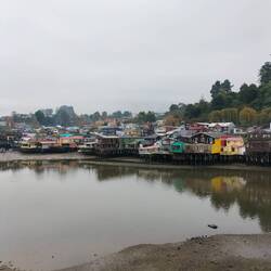 Le lendemain, on termine notre tour des églises puis on se rend à Dalcahue où l'on retrouve nos copains de l'Ense3 : Arzoo Maël et Léonard, eux aussi de passage à Chiloé. Ça nous a fait super plaisir de les croiser et on passe un petit moment à discuter et à prendre des nouvelles les uns des autres. Ça fait tout drôle de croiser des potes de Grenoble si loin de chez nous et chaque groupe repart de son côté avec la promesse de se retrouver le lendemain pour une randonnée. On passe le reste de la journée à visiter Castro, la plus grande ville de Chiloé où l'on savouera d'ailleurs un excellent repas dans un restaurant local. On plante la tente près du départ de la rando du lendemain et comme on a bien aimé le mood de la veille, on passe de nouveau une bonne partie de la soirée dans la voiture. On se la joue même un peu poète ce soir là et on écrit tous les quatre quelques vers à l'élégance douteuse.