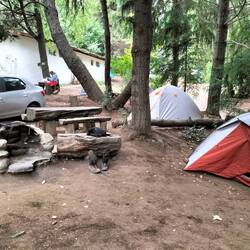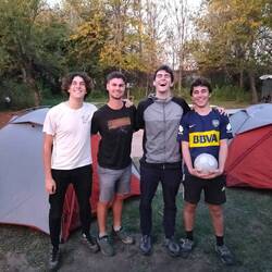 On est arrivé un jour avant Guillaume alors on trouve un chouette camping et on passe la première journée à se reposer après notre petit périple en stop. On en profite aussi pour faire des courses et se préparer un bon repas. Guillaume arrive le lendemain et quel plaisir d'enfin être tous les quatre réunis, l'aventure peut vraiment commencer ! Avec Anto et Édouard on accuse le coup du mois de trek que l'on vient de passer alors on décide de rester à Bariloche pendant encore deux jours histoire de vraiment se détendre et récupérer. On a tout de même fait plusieurs balades et une chouette rando en montagne pour ne pas perdre les bonnes habitudes. On a aussi visité le musée du chocolat et rencontré un couple argentin avec qui on a bien sympathisé. Enfin au camping, on a eu la surprise de tomber sur deux grenoblois avec lesquels on a beaucoup rigolé et passé une super soirée.