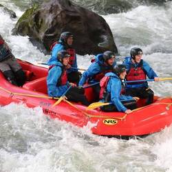 Le travail manuel nous fait du bien et quel bonheur d'enfin se poser un peu, on est logé dans une cabane super confortable dans laquelle on a une cuisine ! On peut même se servir dans le potager pour cuisiner c'est royal. Tous les jours on emmène les chiens Lawen et Choco se bainger près de la cascade du parc, on se prend vite d'affection pour les deux labradors et les plus courageux iront piquer une tête avec eux à quelques reprises. On profite de nos jours de pauses pour aller se balader dans les environs, notamment dans le parc Huerquehue où on a fait une rando superbe. La dernière semaine on passe aussi une journée mémorable à faire du rafting sur la rivière avec des guides super marrants.